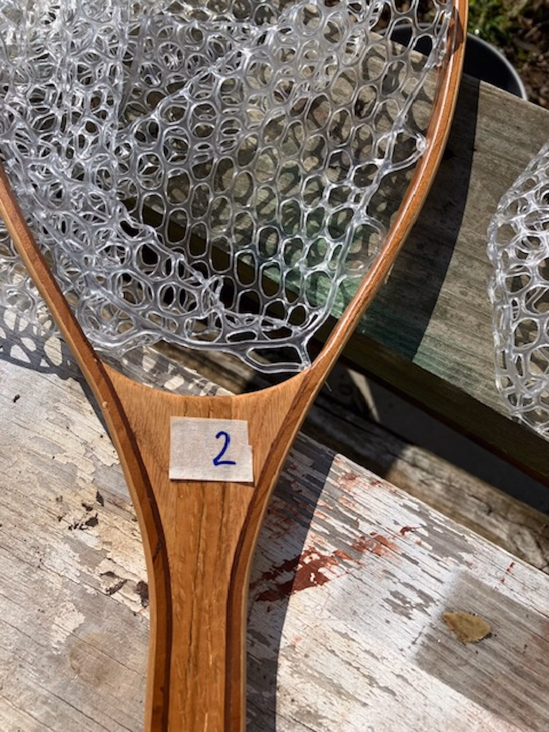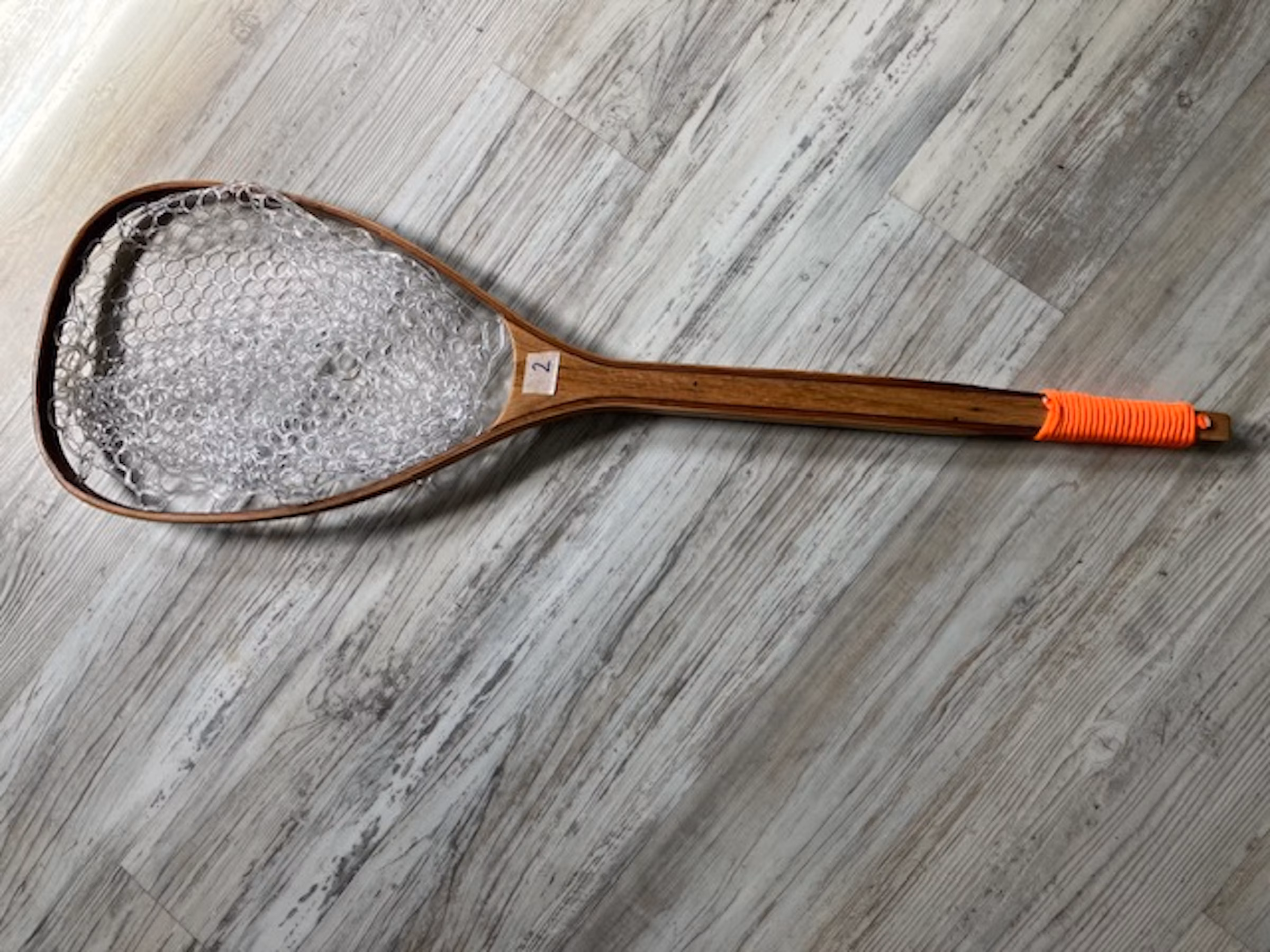- this net is made with 3 laminations of walnut, cherry, and hickory with a red oak center handle