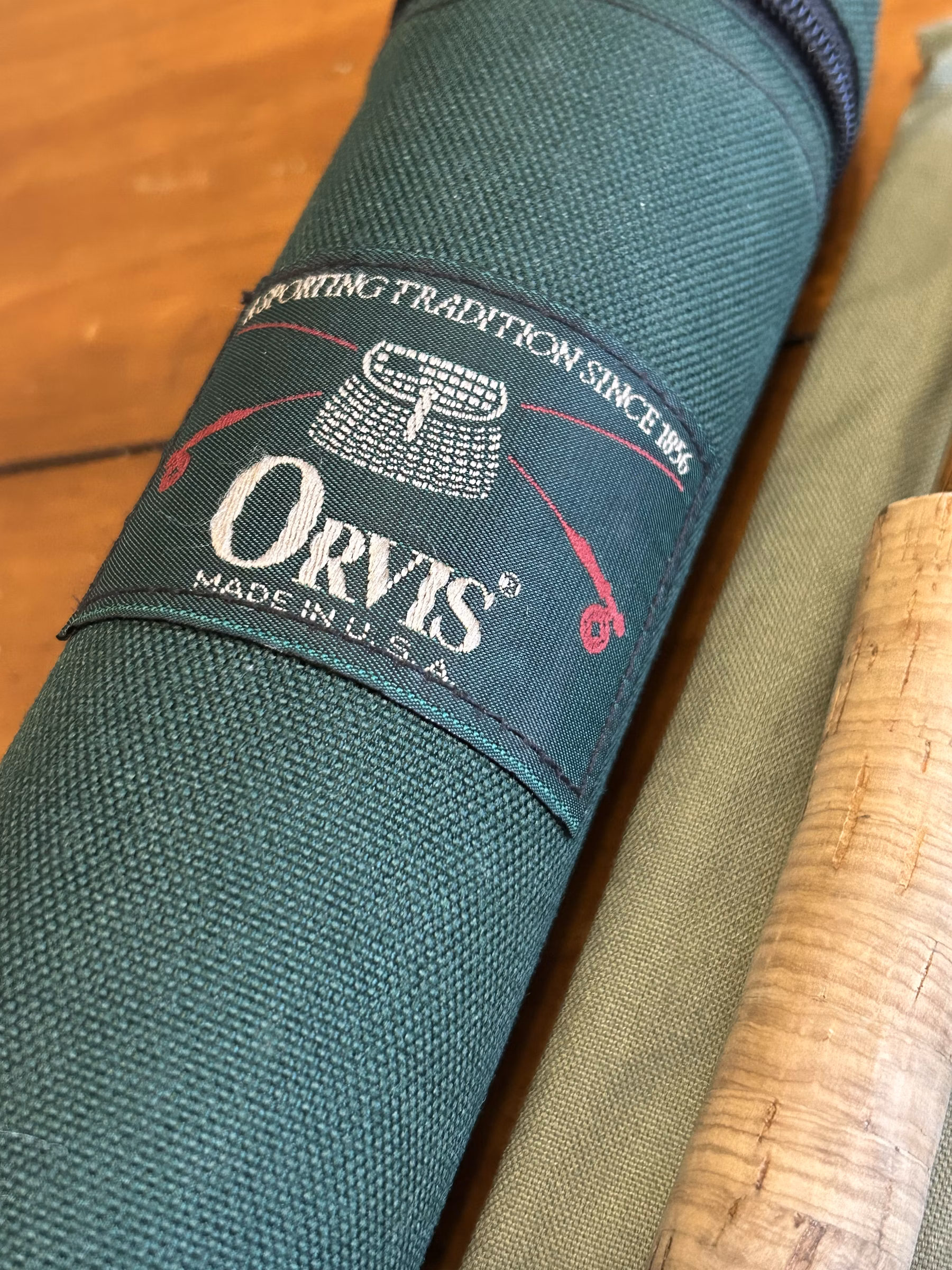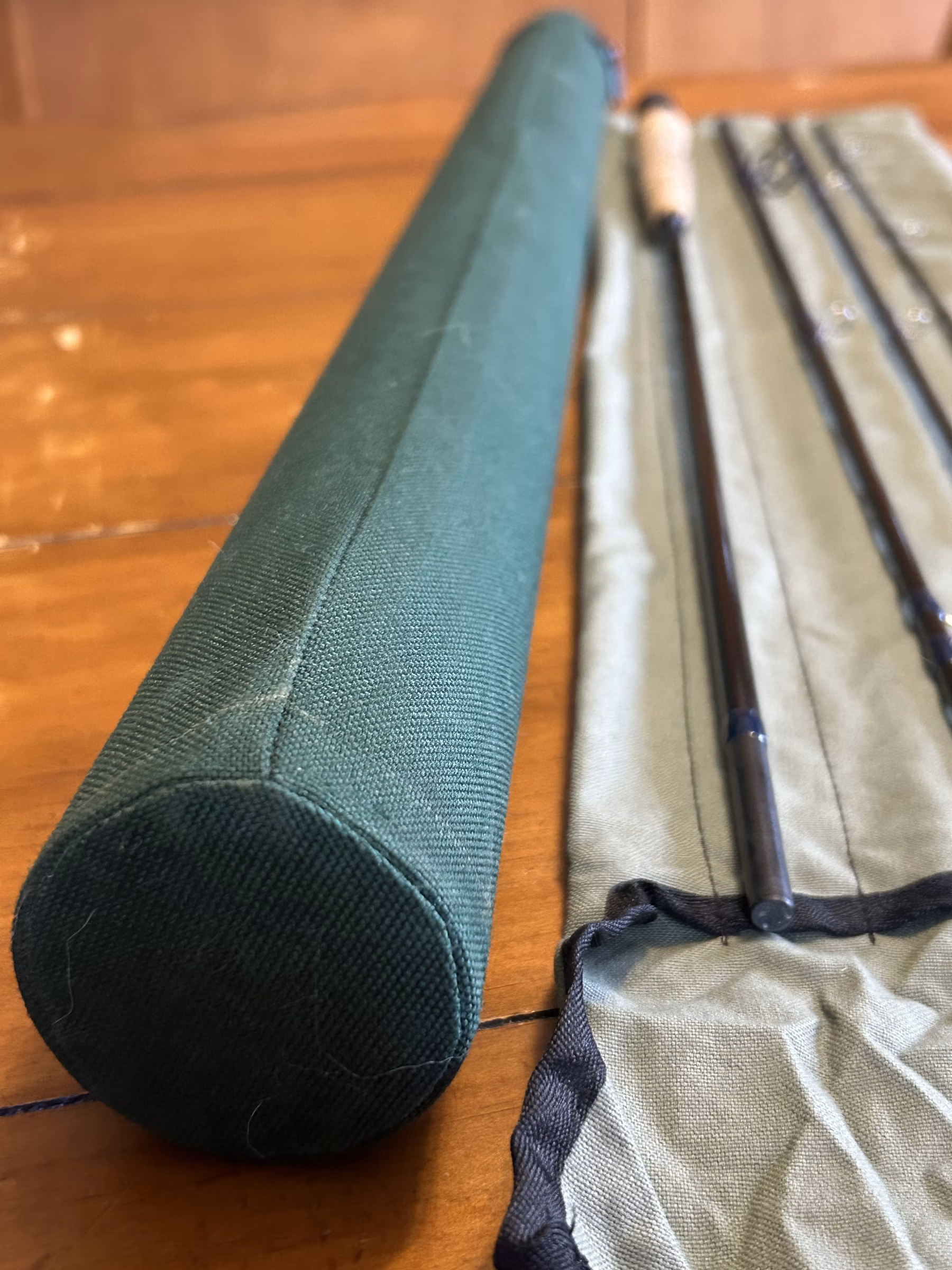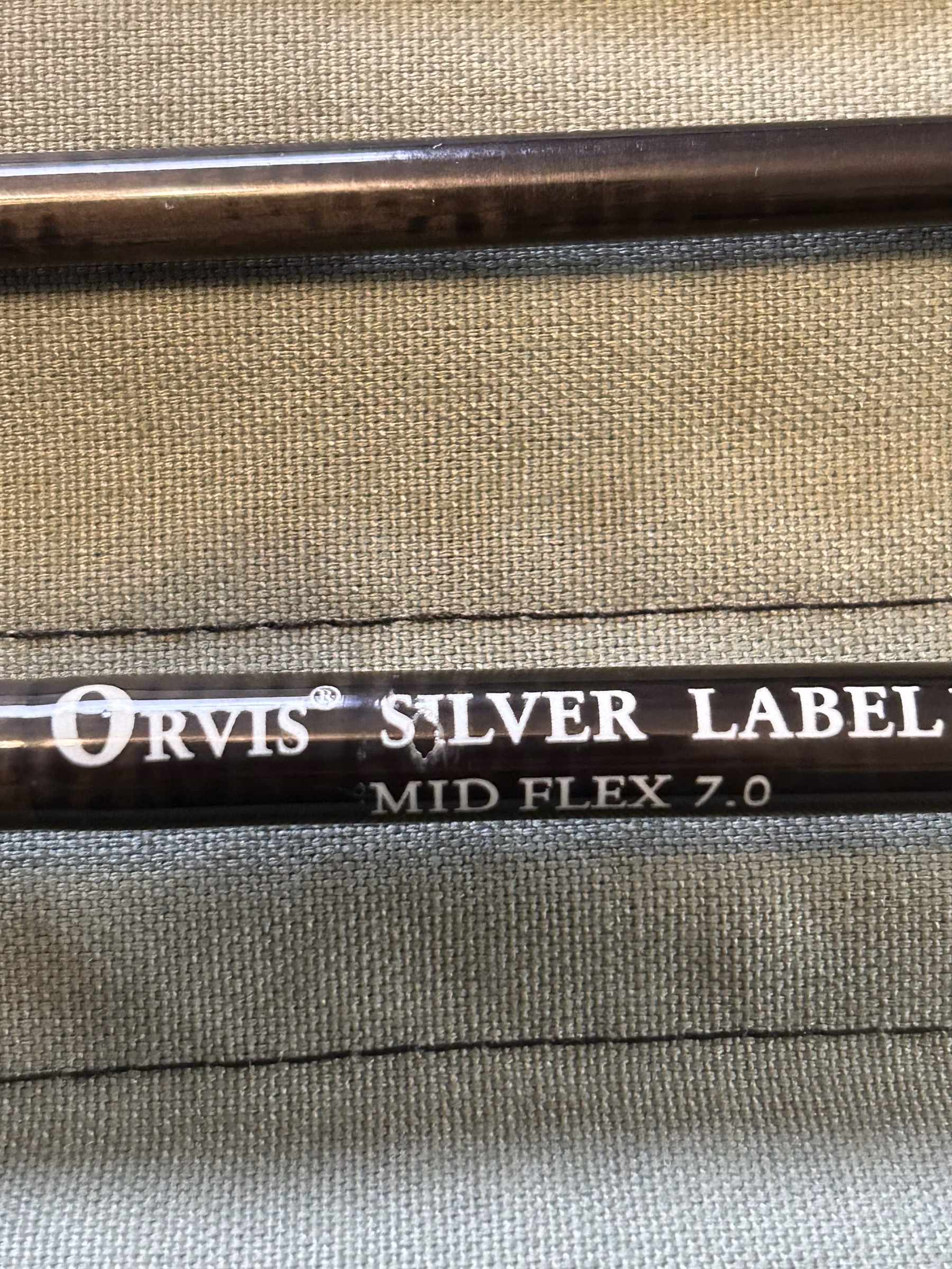 ORVIS Silver Label MID-FLEX Fly Rod [6wt, 9’, 4pc] This Orvis Silver Label is a fantastic starter rod. There are a few minor, surface chips on the rod (pictured close up for ref); these do not affect the performance in any way. The striking blue guide wraps contrast beautifully to the darker/muted tones of the rod & reel seat. This is a Mid Flex, but certainly feels more like a Med-Fast Rod compared to some. Case is original with info stamped on the top. In excellent condition with a sturdy zipper. Built like a tank! Don’t let this one get away! 🔥
