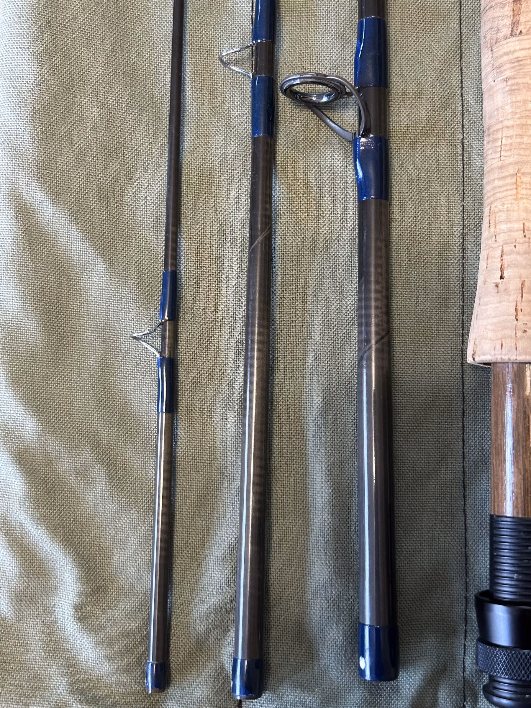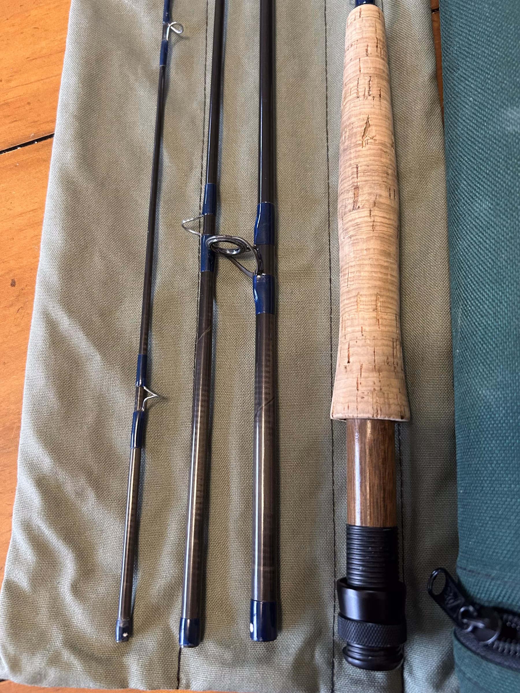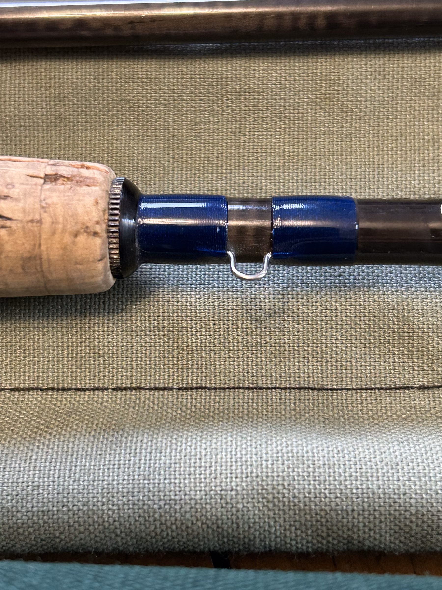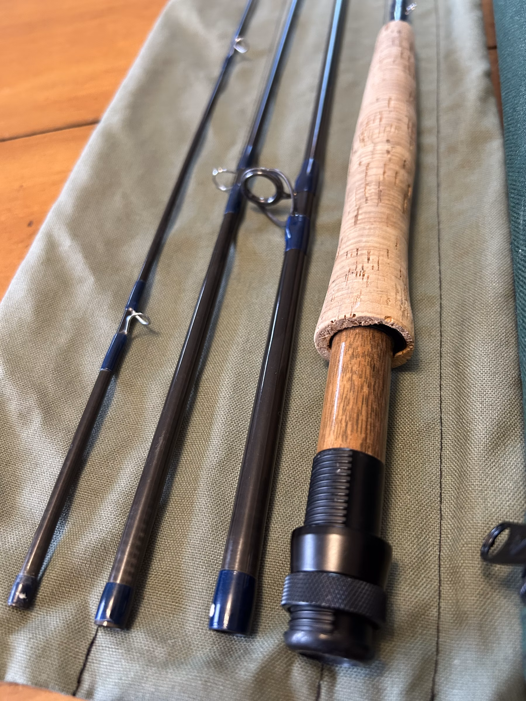 ORVIS Silver Label MID-FLEX Fly Rod [6wt, 9’, 4pc] This Orvis Silver Label is a fantastic starter rod. There are a few minor, surface chips on the rod (pictured close up for ref); these do not affect the performance in any way. The striking blue guide wraps contrast beautifully to the darker/muted tones of the rod & reel seat. This is a Mid Flex, but certainly feels more like a Med-Fast Rod compared to some. Case is original with info stamped on the top. In excellent condition with a sturdy zipper. Built like a tank! Don’t let this one get away! 🔥