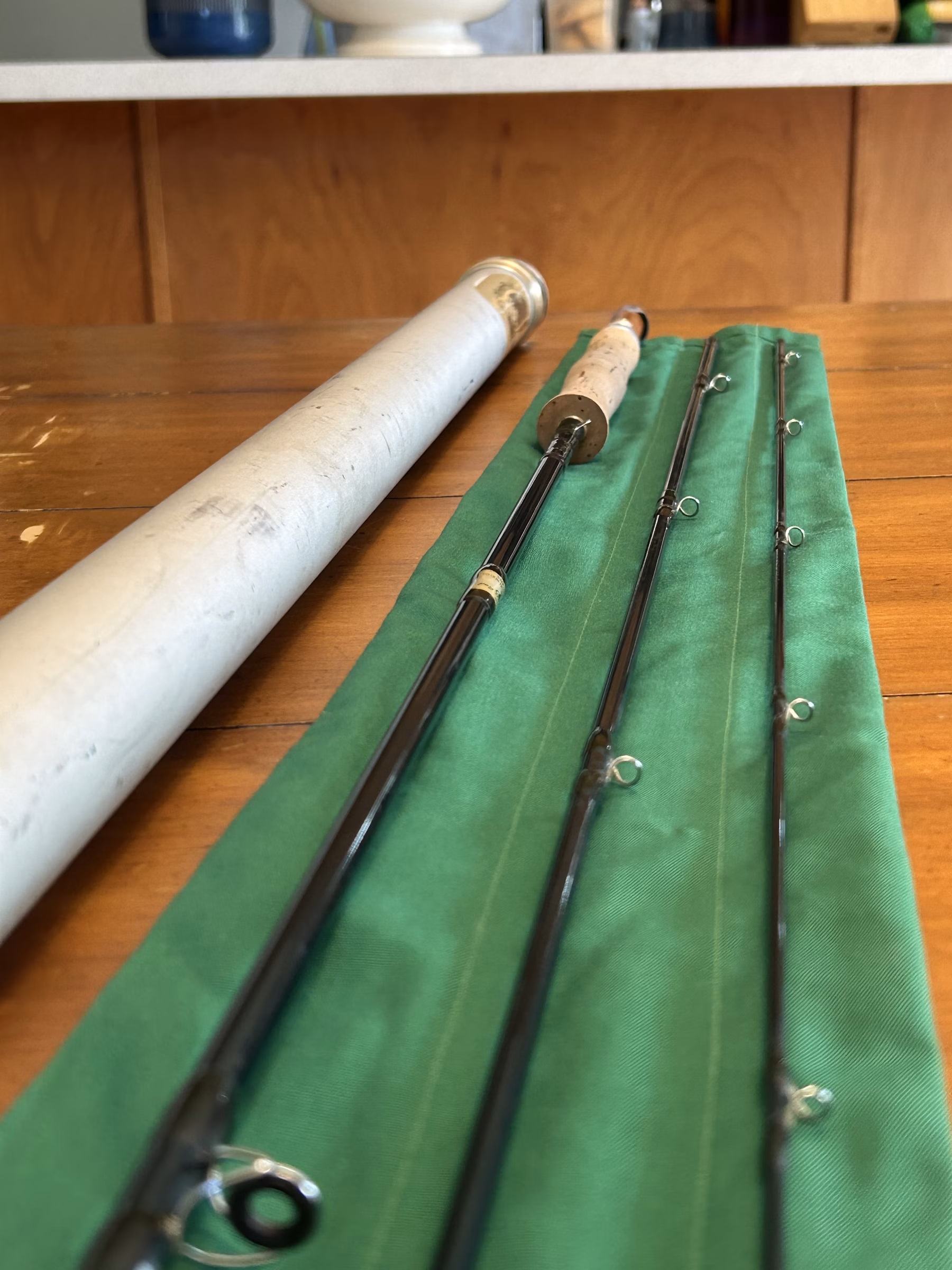 Check out this rare RL Winston IM-6 in a 7wt configuration. 9’ long and 3pc sections make this an incredibly accurate and tough rod. The reel seat & hardware, blanks, and guides on this piece are all in excellent shape. The teak handle is particularly sharp, esp when pairing with a silver reel. 🤌