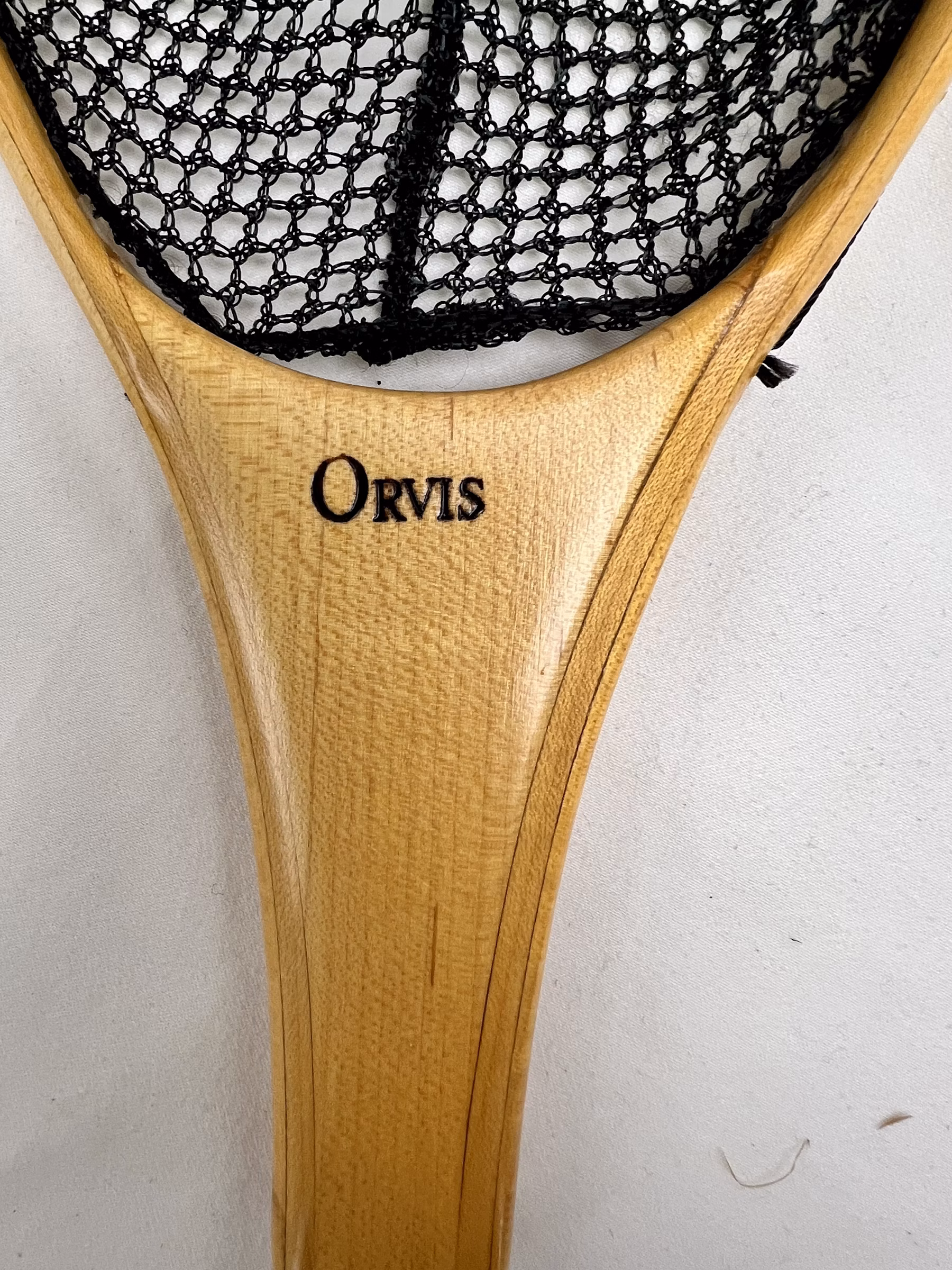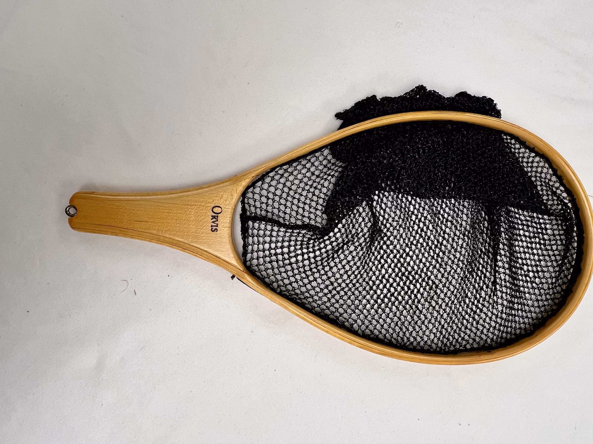 Small vintage trout fly fishing dip net. Wooden trout dip net black mesh netting and brass eyelet hanger. No scratches or gouges. Has a satin finish. Overall excellent condition. Net area measures 8” x12”, overall size is 9” X 16”. Asking price $75. Shipping to lower 48 only.